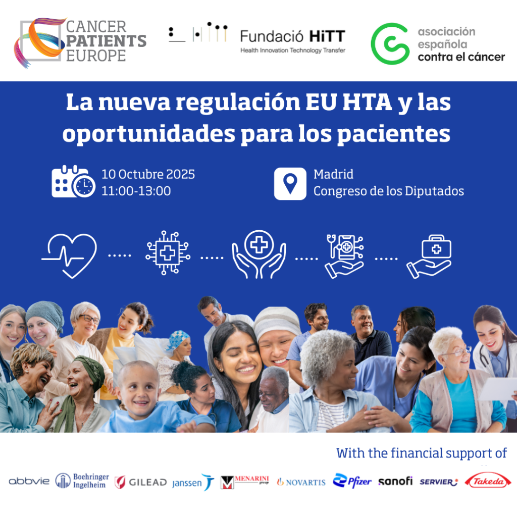 Cancer Patients Europe (CPE), the Asociación Española contra el Cáncer and Fundació HiTT are organising a conference on 10 October entitled The new EU HTA regulation and opportunities for patients, which will be held at the Spanish Parliament in Madrid.